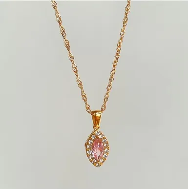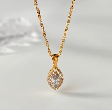 Elevate your jewelry collection with the Olive Shaped Horse Eye Zircon Full Drill Titanium Steel Necklace, a striking piece that combines luxurious sparkle with durable titanium steel. This elegant necklace features a stunning horse eye-shaped zircon stone, fully drilled for maximum brilliance and shine. The unique olive-shaped pendant is designed to catch the light from every angle, making it a statement accessory perfect for formal occasions, parties, or adding a touch of glamour to your everyday style.