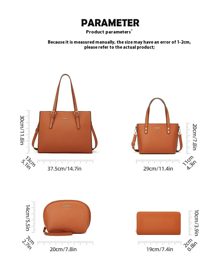 Made with high-quality materials, this one-shoulder set combines fashion with practicality. The sleek and modern design of the bag is complemented by well-crafted accessories, including a wallet, coin purse, and cosmetic bag that are tailored to keep your items secure and easy to access. Perfect for women who love to stay organized without compromising on style, this combination set makes a statement wherever you go.