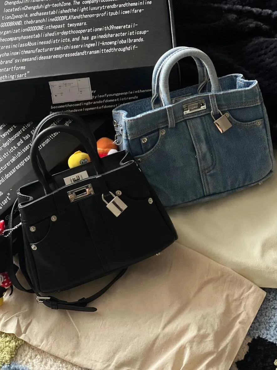 One-shoulder Crossbody Denim Retro Easy Matching Washed Denim Handbag