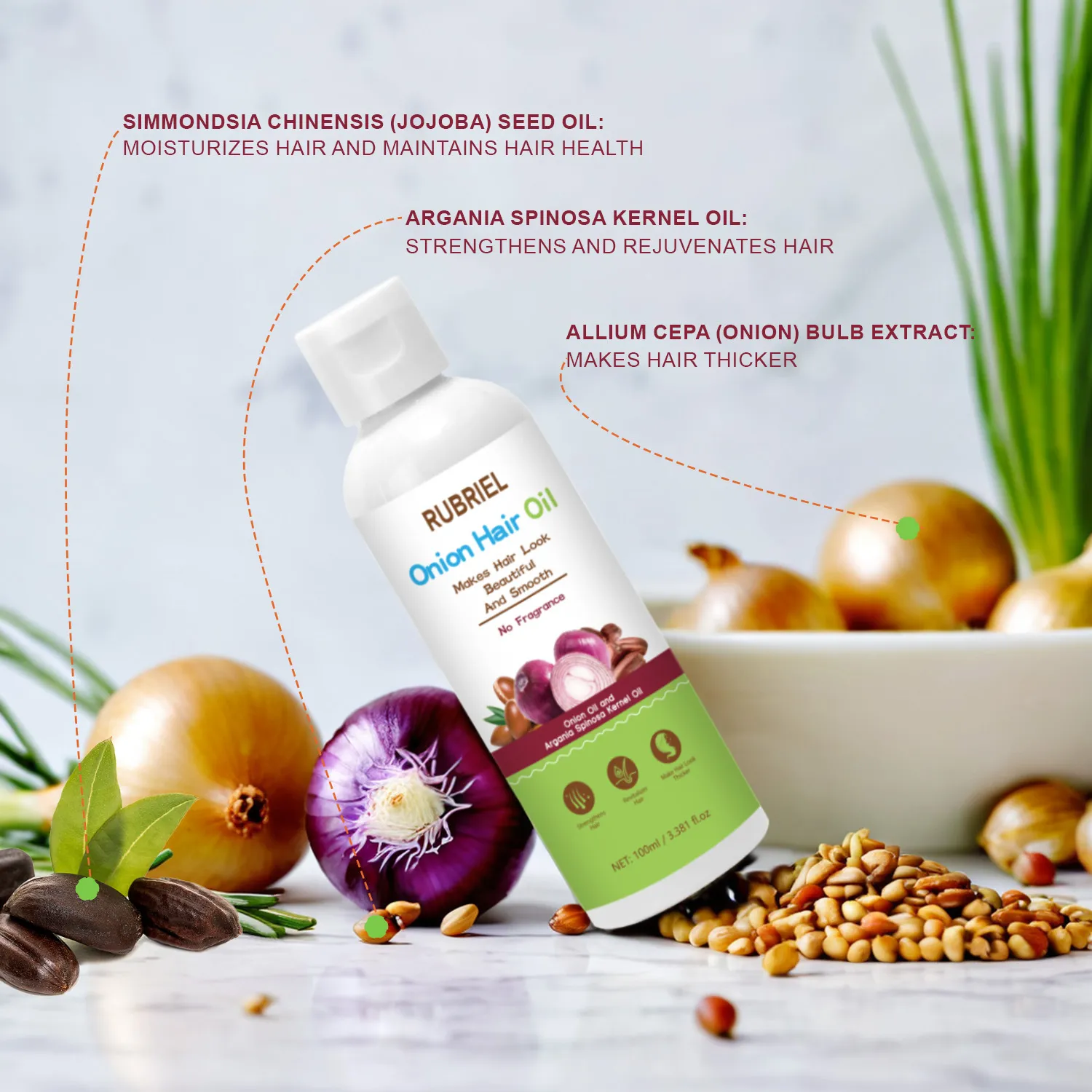 - Promotes Hair Growth: Onion extract stimulates follicles for stronger regrowth.