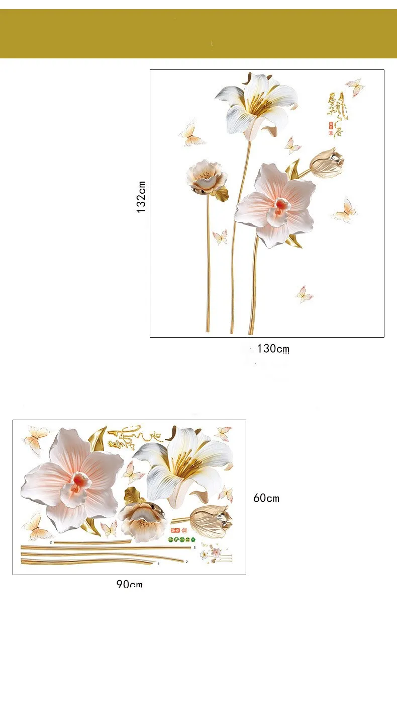 Orchid Fragrant Wall Stickers Relief Effect TV Background Wall