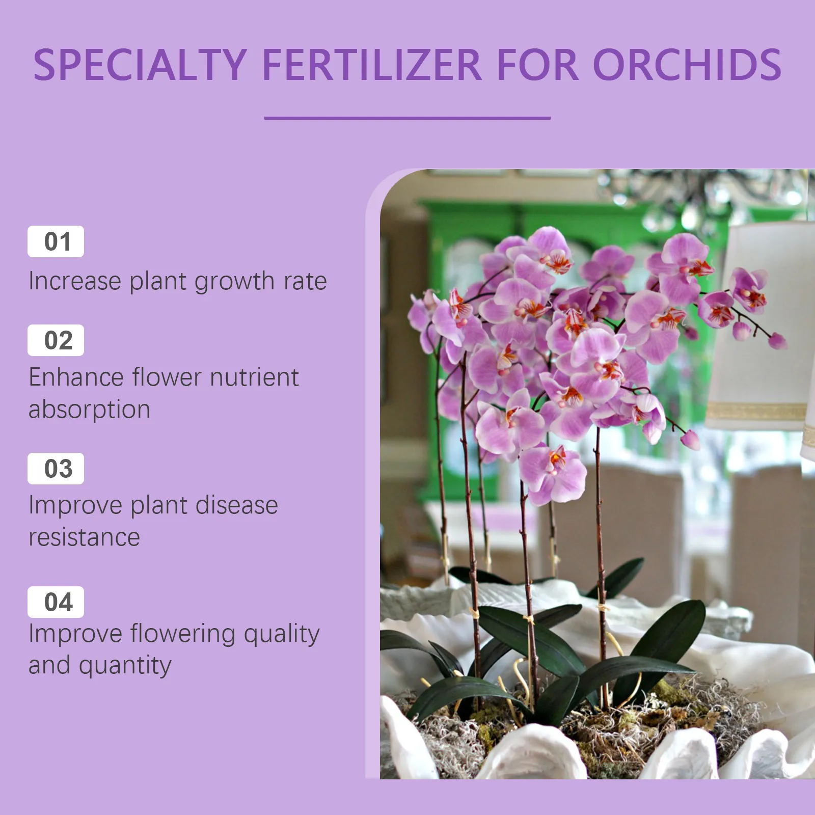Whether you’re growing orchids indoors or in greenhouses, this product supports your plants’ natural beauty and vitality for stunning displays year-round.