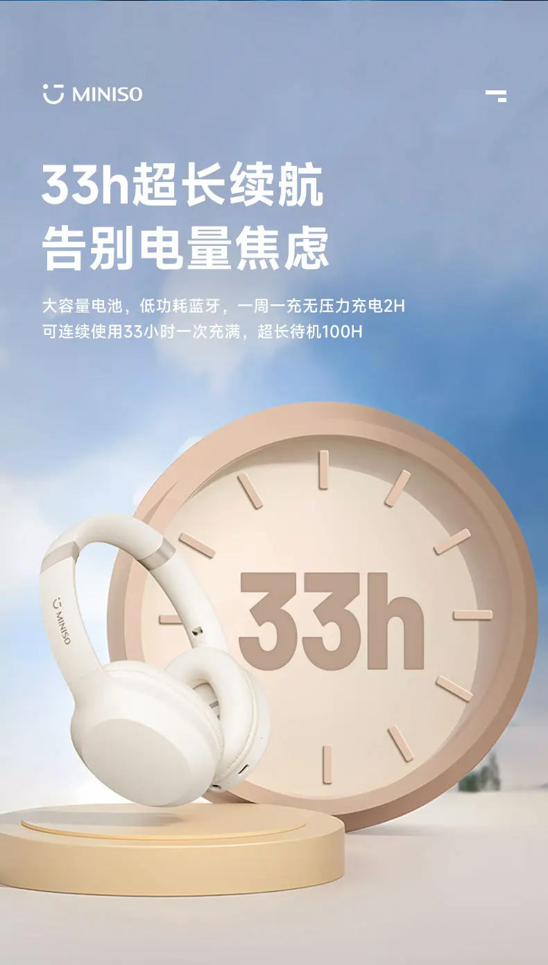 The MINISO MCD02 Bluetooth V5.3 Headset offers a range of benefits for users seeking high-quality audio and portability. The HIFI sound and low latency ensure an exceptional listening experience, while the foldable design makes it easy to take the headphones wherever you go. The comfortable fit and long battery life add to the convenience, making the MCD02 a versatile choice for everyday use and travel.