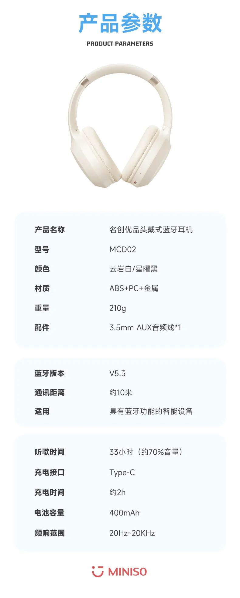 The MINISO MCD02 Bluetooth V5.3 Headset is a top choice for those who value both performance and portability. With its advanced Bluetooth technology, superior sound quality, and comfortable design, the MCD02 delivers an impressive listening experience. Whether you're on the go or relaxing at home, these wireless headphones offer a perfect blend of style, functionality, and convenience.