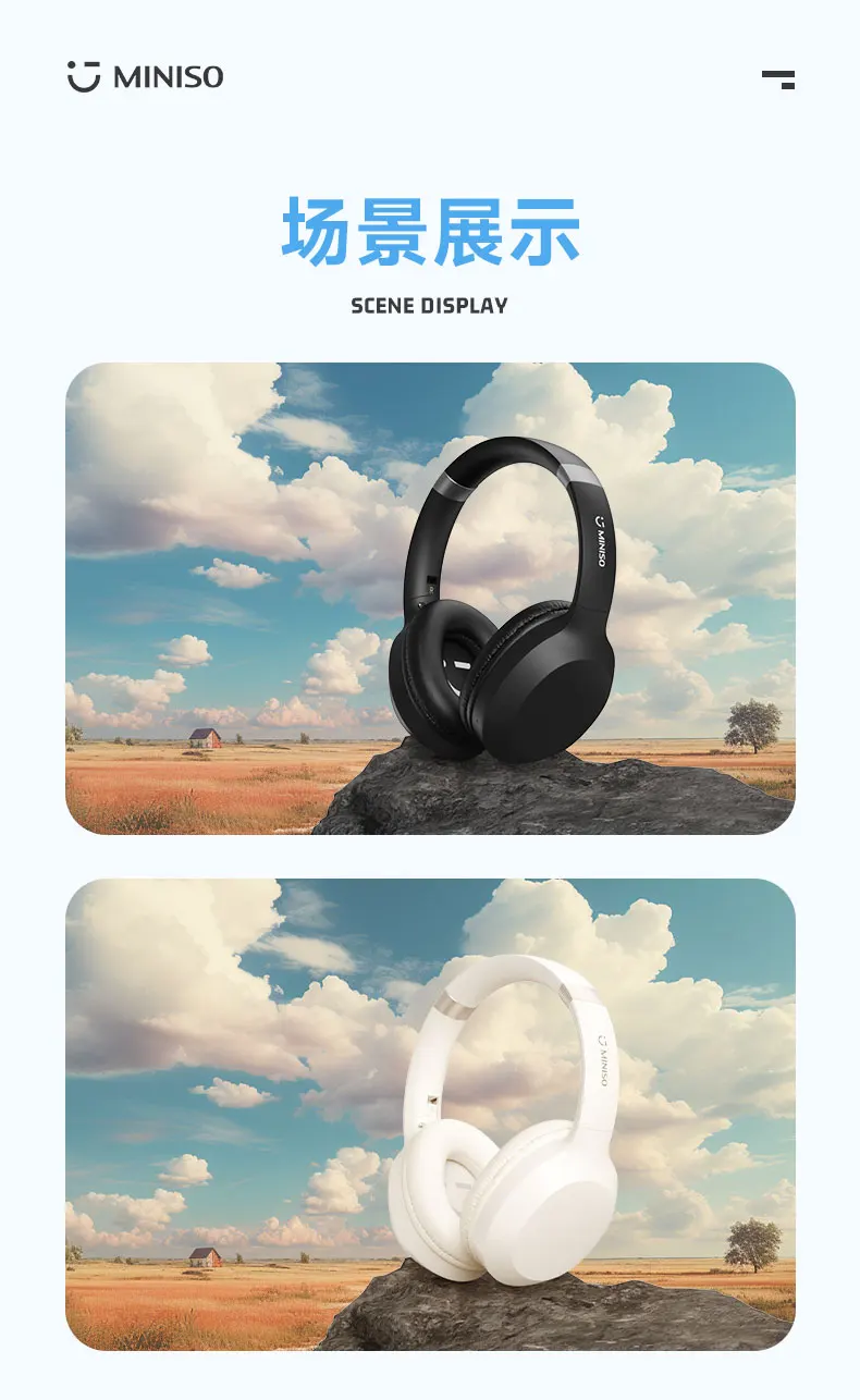 The MINISO MCD02 Bluetooth V5.3 Headset combines advanced audio technology with a sleek, portable design, making it an ideal choice for those who demand high-quality sound and convenience on the go. With its HIFI sound, low latency, and portable folding capabilities, the MCD02 is perfect for travel, outdoor adventures, and everyday use. This 2023 new model offers a modern listening experience that caters to audiophiles and casual listeners alike.