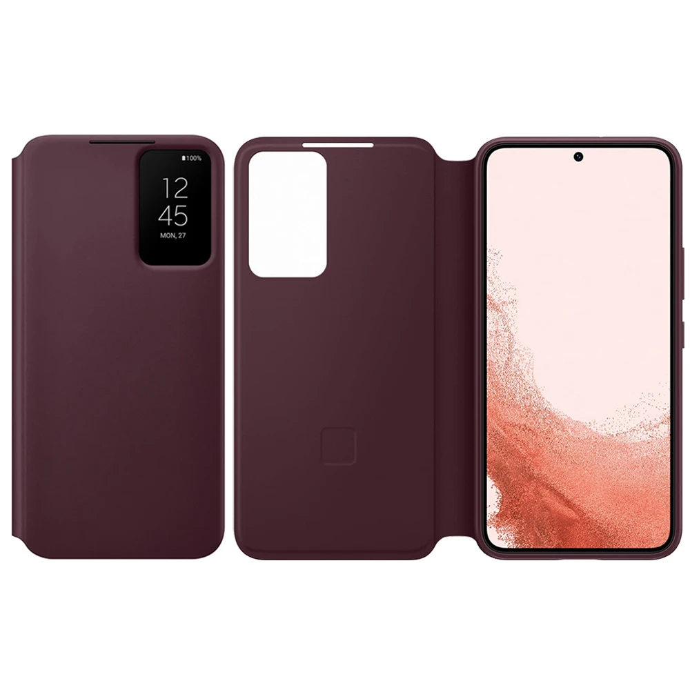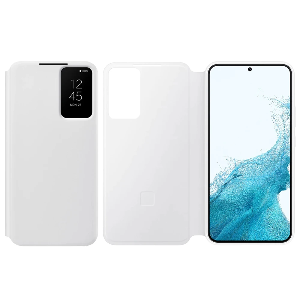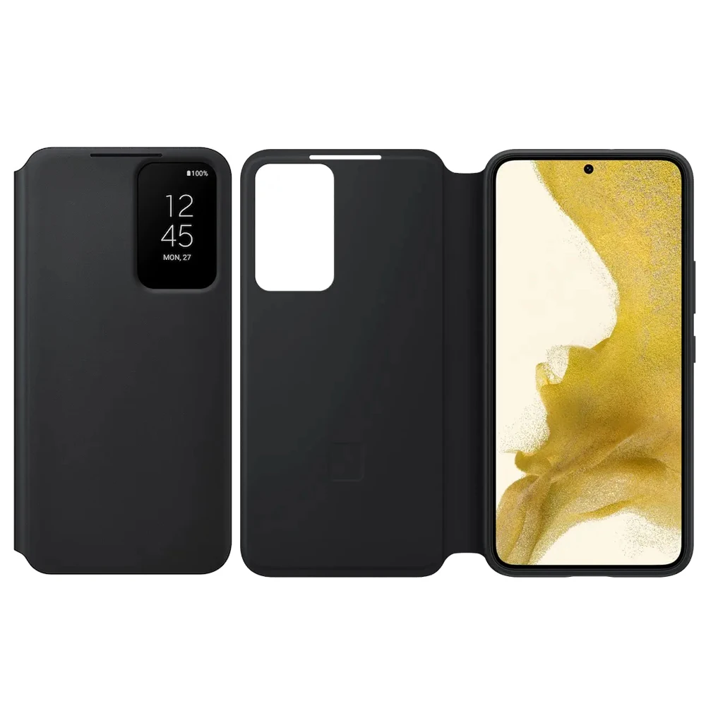 The Original Samsung Clear View S-View Flip Cover is designed for the Galaxy S22 and S22+. This shockproof case, model EF-ZS901 and EF-ZS906, provides comprehensive protection while allowing you to view notifications and interact with your phone without opening the cover. The sleek and durable design ensures your device stays protected from impacts and scratches.Helps keep your phone clean*