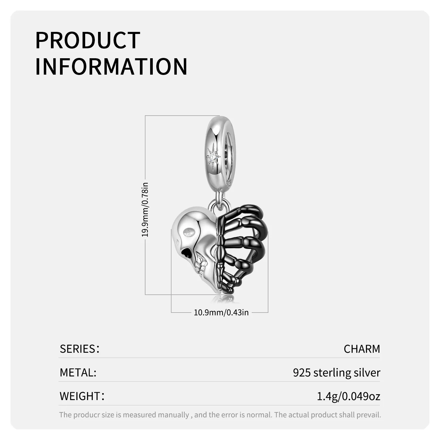 Original Skeleton Heart Skeleton Pendant Punk Style Personality Sterling Silver Pendant DiyS925 Silver Accessories