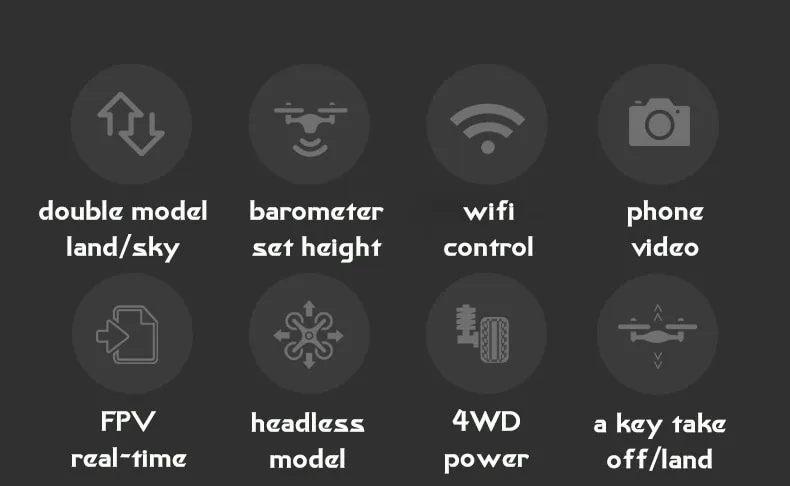 - Dual controls for both car and drone functionality, allowing you to easily switch between the two modes