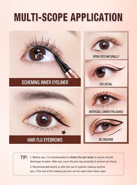 The deep Black color tone delivers intense definition, while the waterproof and smudge-proof formula ensures your eye makeup stays flawless through humidity, sweat, tears, and long hours. Lightweight and smooth, it applies evenly without dragging and dries quickly to prevent smudging.