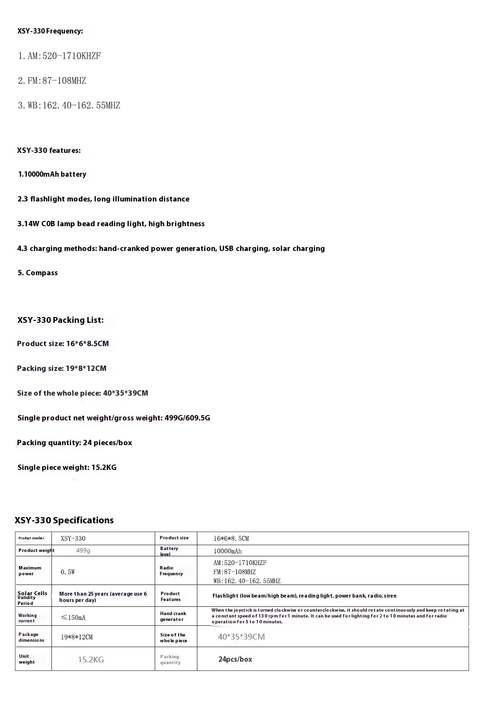 Package List: Radio * 1 instruction * 1 USB Type-C cable * 1 wrist strap * 1 Compass * 1