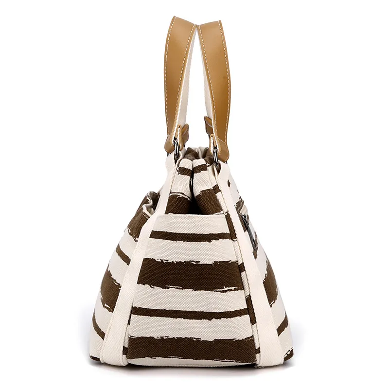 Outdoor Fashion Canvas Large Capacity Striped One-shoulder Storage Handbag