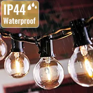 G40 Bulb string lights is IP44 waterproof which can better decorate your courtyard, staircase, porch, living room, especially great for Holidays and Events like Christmas,Halloween,Parties,and more.It is a great gift for your family and friends.