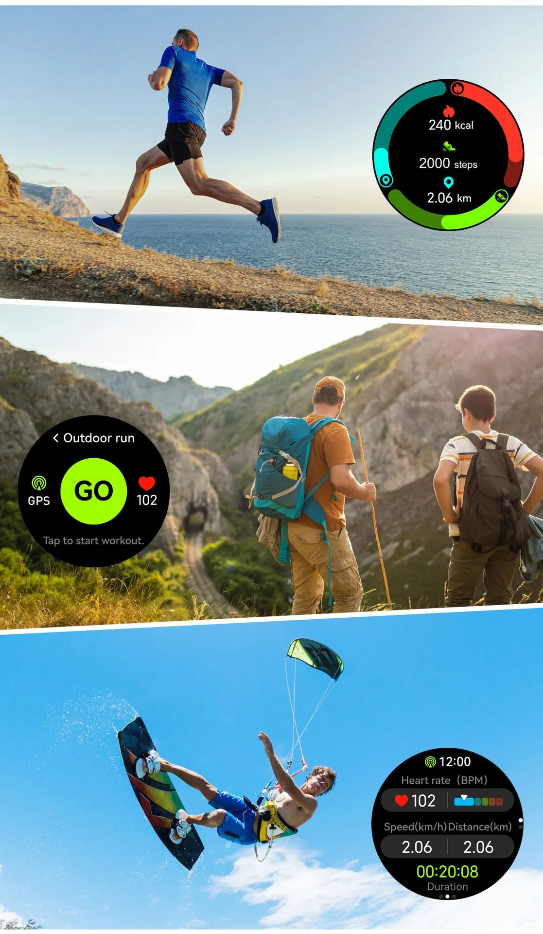 Built-In GPS: Track your outdoor activities accurately, including hiking, running, and cycling, with precise GPS