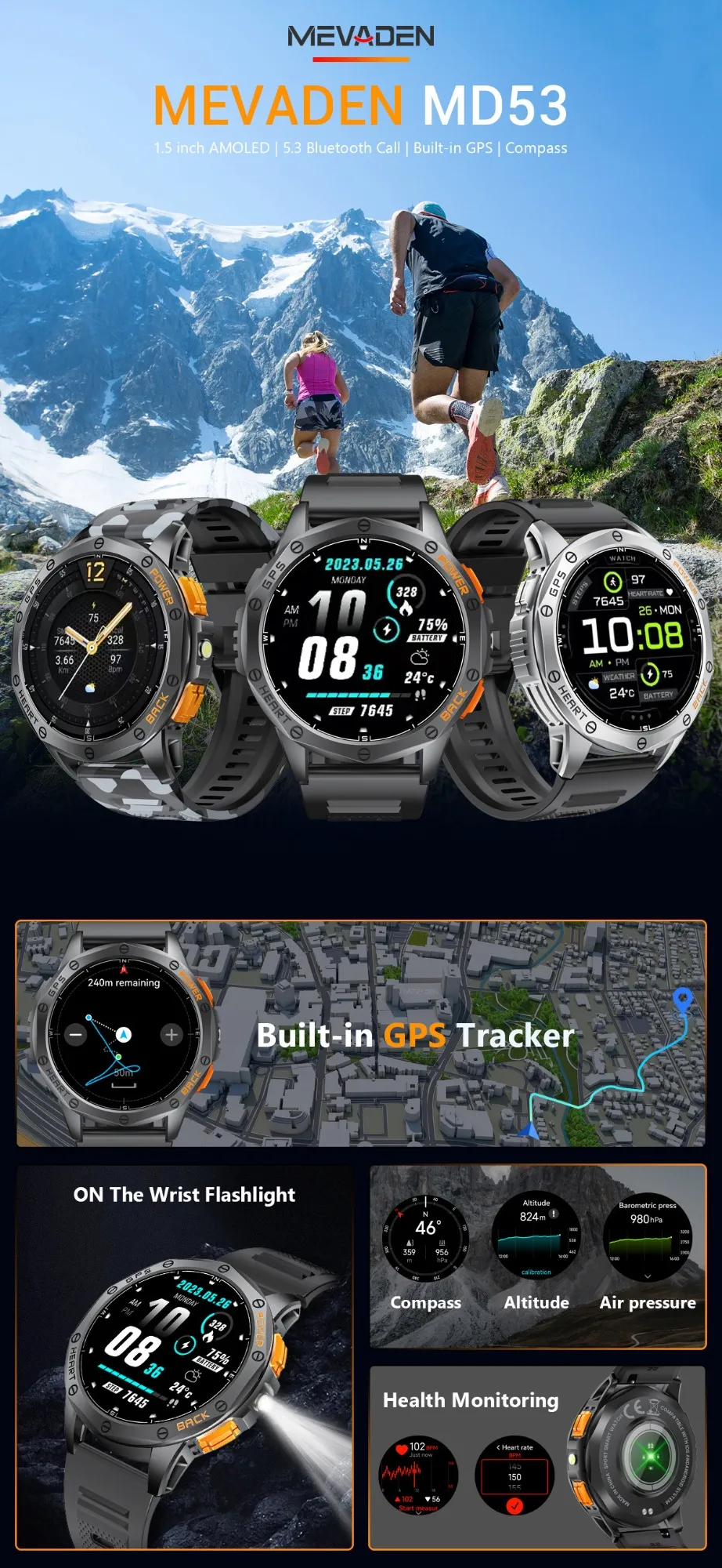 What sets the MD53 apart is its rugged durability combined with smart, practical features that cater to both casual and serious outdoor enthusiasts. Whether you're into sports, fitness, or simply love exploring the outdoors, this smartwatch is the perfect companion to track your health and navigate your journeys.