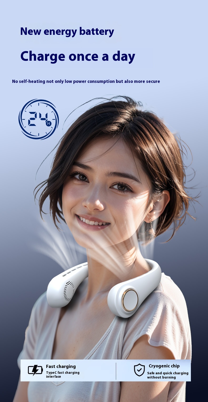 fit around the neck, providing hands-free convenience. With a rechargeable battery, it offers long-lasting performance, making it perfect
