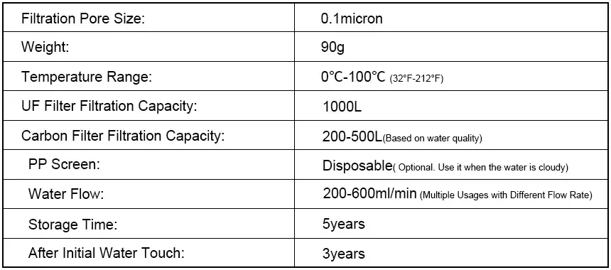 Designed for quick, efficient filtration, this water purifier ensures you can get safe drinking water in just minutes. The high-performance filtration system uses a multi-stage filter to remove impurities, leaving you with clean and clear water. With this portable filter, you can purify up to 1000 liters of water, making it an excellent choice for long camping trips, hiking expeditions, or survival situations.