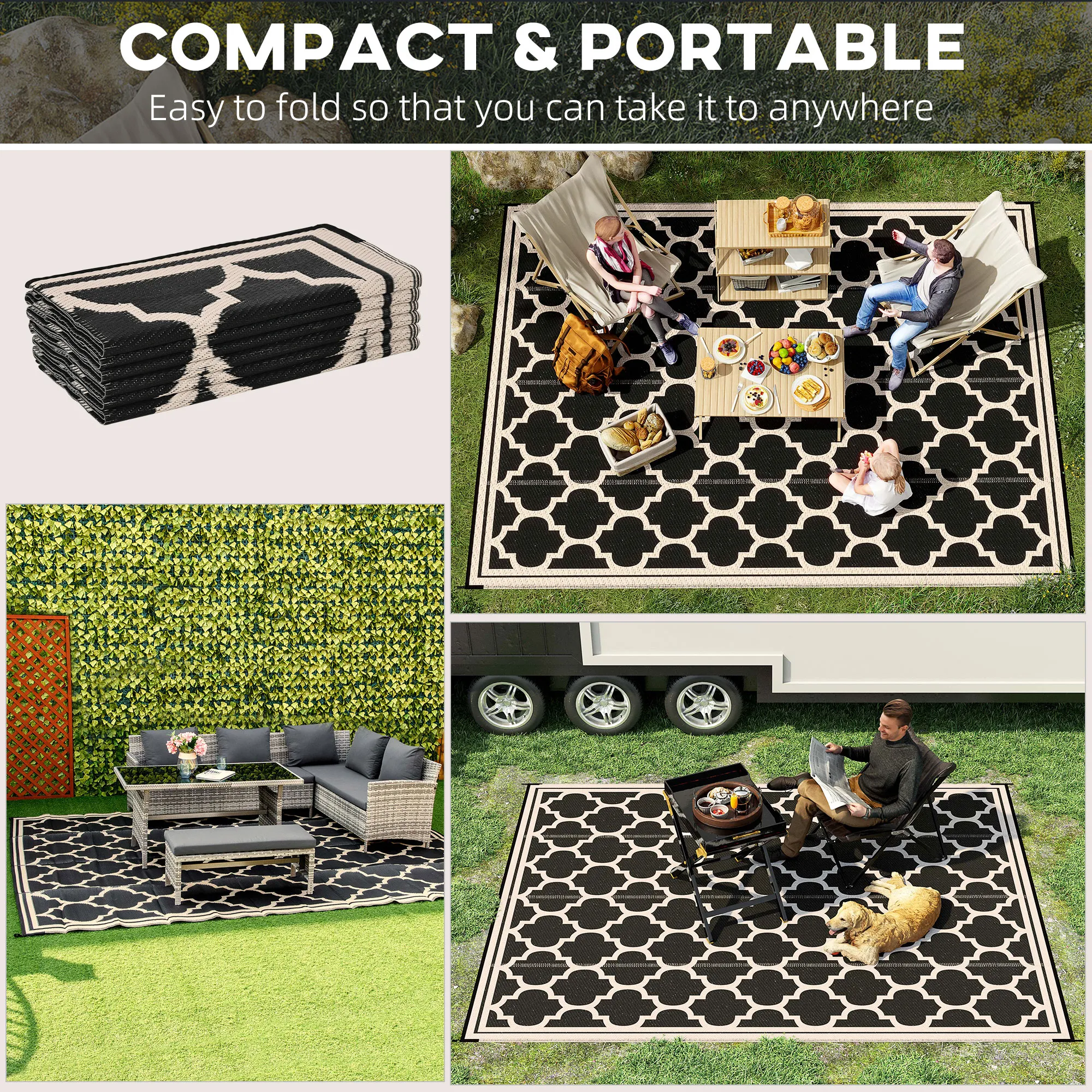 - Features:- Waterproof outdoor rug for camping, picnic, RV road tour, etc.