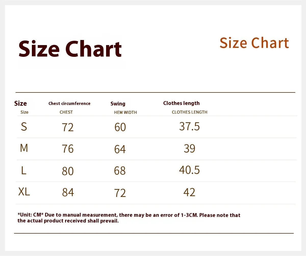 allow 2-3cm differences due to manual measurement. 2. Please check the size chart carefully before you buy the item, if you don't know how