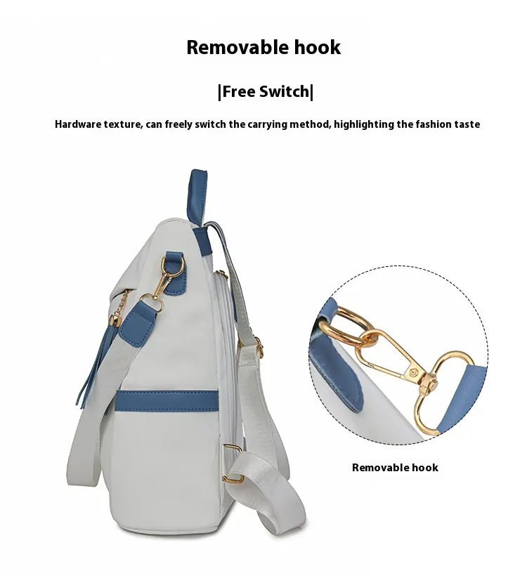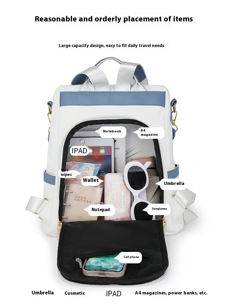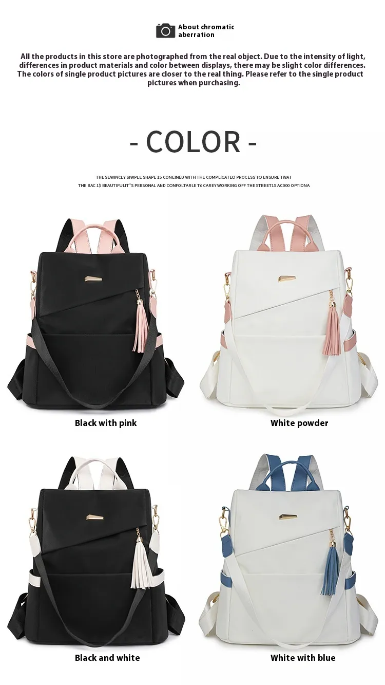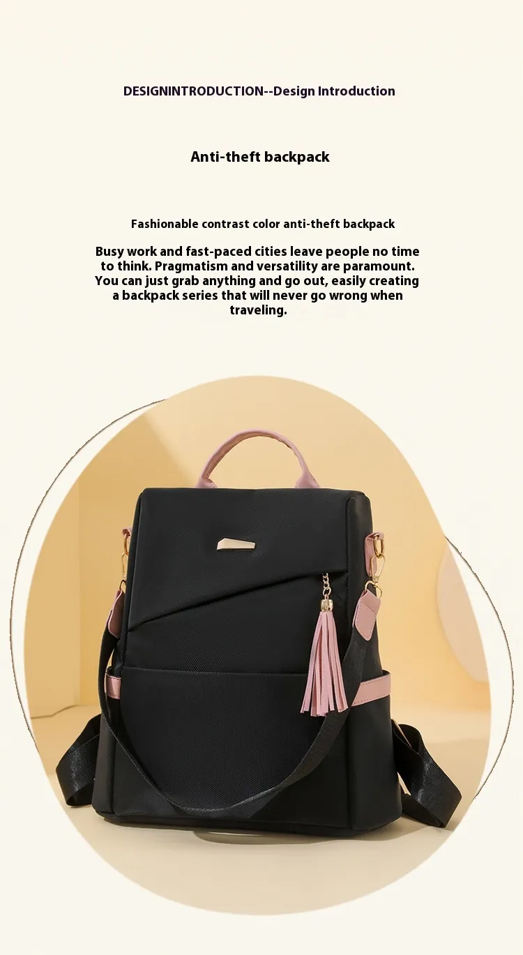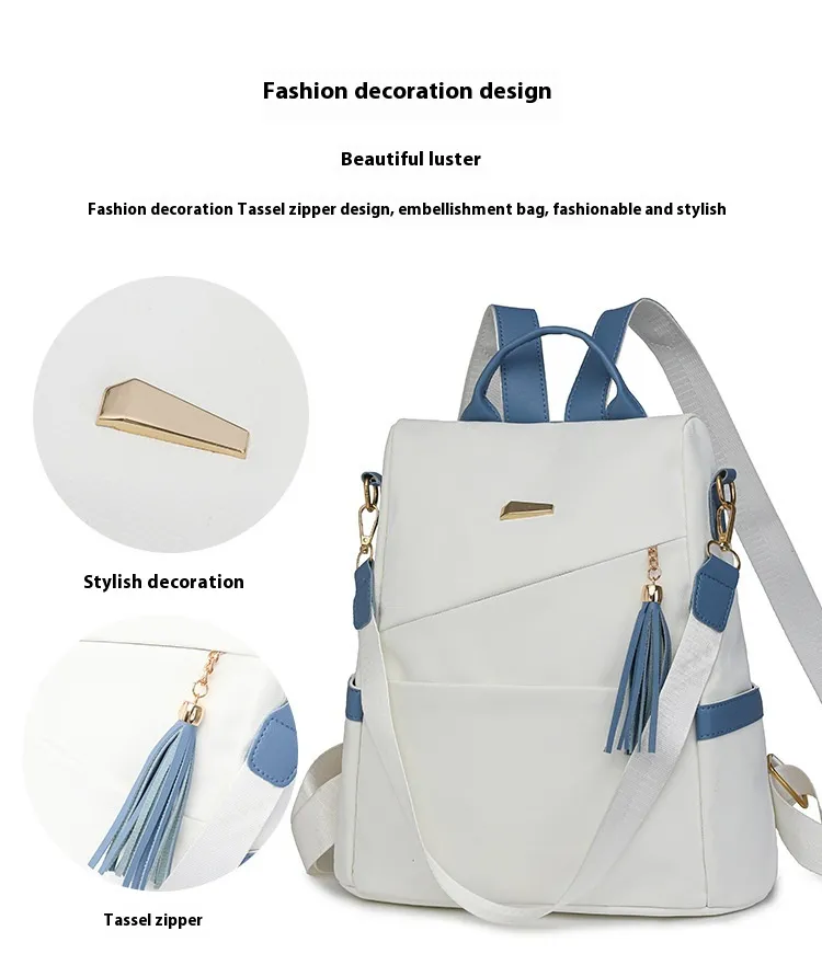 In conclusion, the Oxford Cloth Stitching Women's Backpack is a must-have accessory that combines durability, security, and style. Its anti-theft back zipper ensures your belongings are safe, while the spacious compartments and comfortable straps provide all-day convenience. Whether you’re heading to school, work, or traveling, this versatile backpack is designed to meet all your needs. Make this stylish and functional backpack a part of your daily routine and enjoy the perfect blend of form and function.