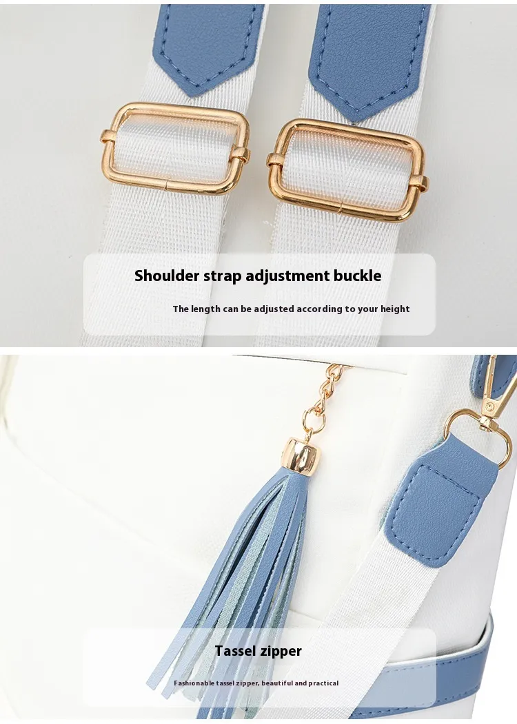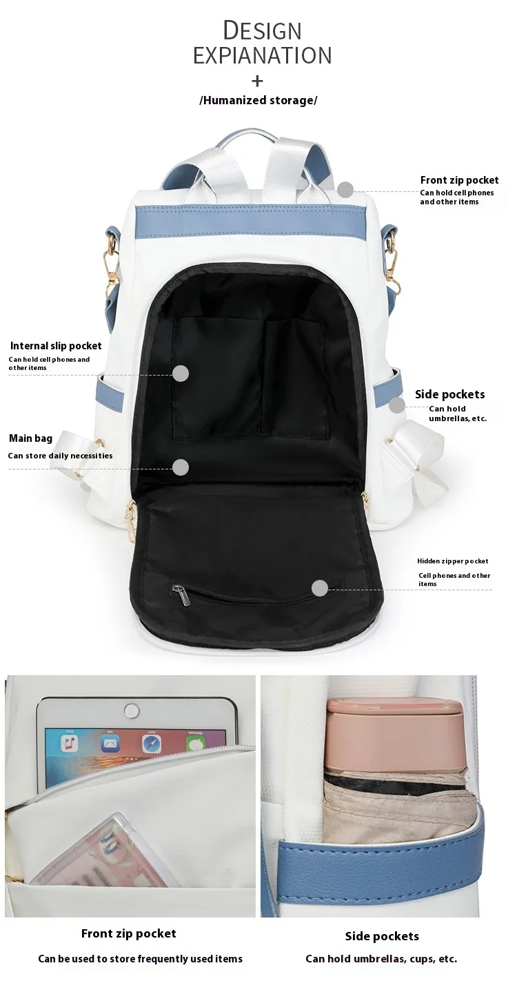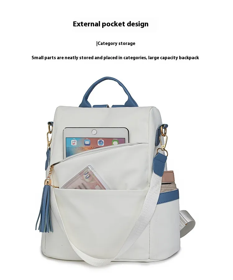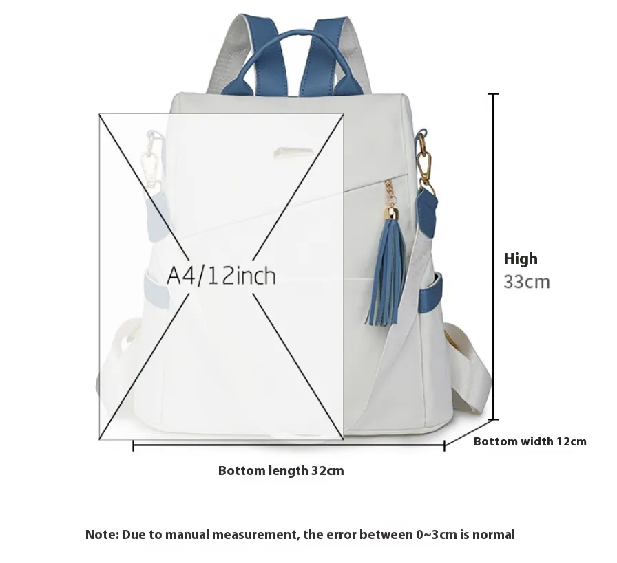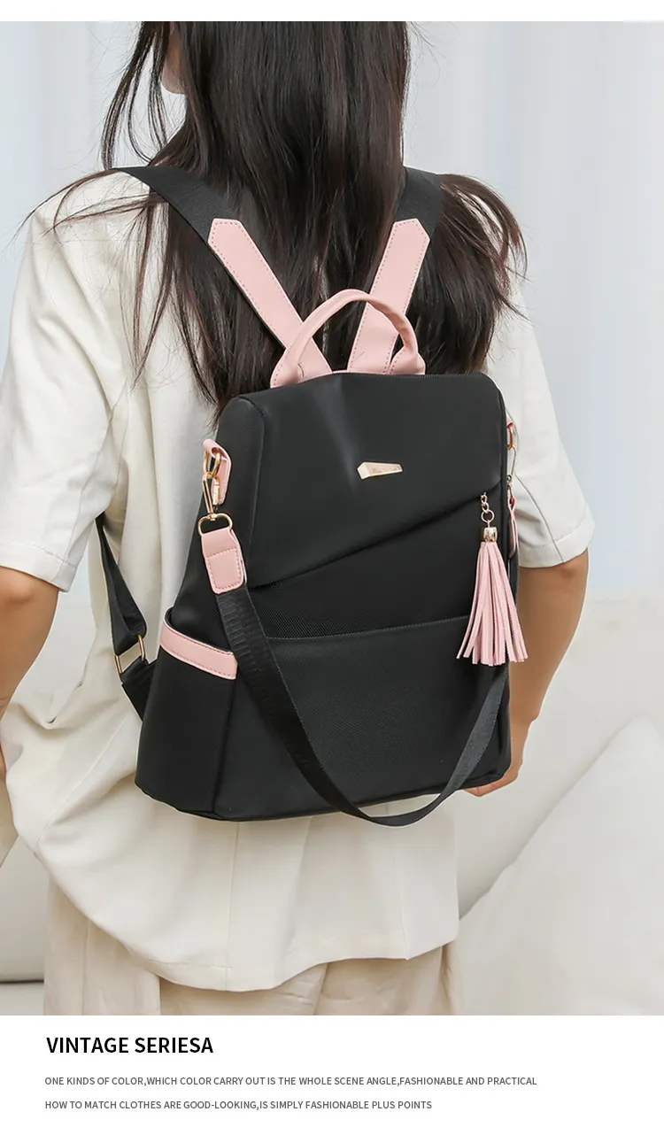 In conclusion, the Oxford Cloth Stitching Women's Backpack is a must-have accessory that combines durability, security, and style. Its anti-theft back zipper ensures your belongings are safe, while the spacious compartments and comfortable straps provide all-day convenience. Whether you’re heading to school, work, or traveling, this versatile backpack is designed to meet all your needs. Make this stylish and functional backpack a part of your daily routine and enjoy the perfect blend of form and function.