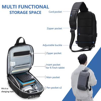 Description – OZUKO Unisex Chest Bag with Anti-Theft Password Lock