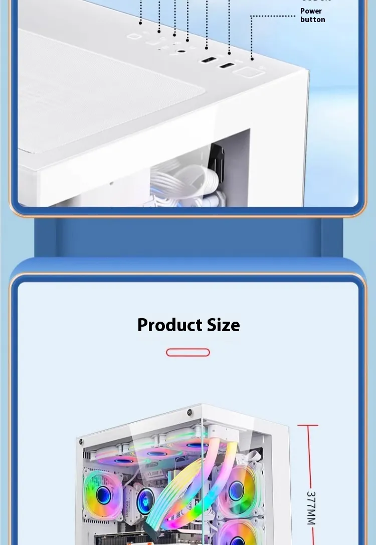 The Panoramic Glass 360 Water-Cooled Desktop Computer Host offers an unbeatable combination of style, performance, and cooling technology. With its high-performance components, 360° panoramic glass design, and advanced water cooling system, it provides everything you need for gaming, work, or creative tasks. Enjoy seamless performance and impressive visual effects, all within a sleek, modern package. Whether you're upgrading your current setup or building your dream PC, this computer host delivers everything you need and more.