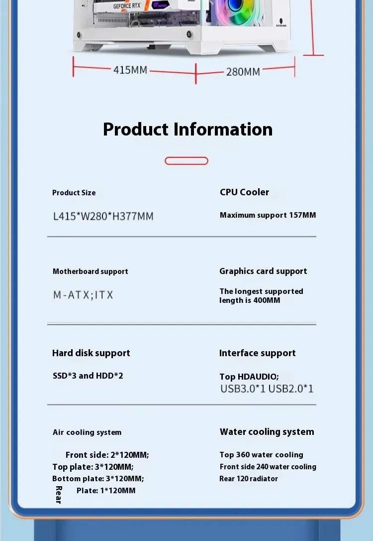 Elevate your computing experience with the Panoramic Glass 360 Water-Cooled Desktop Computer Host. Designed for performance enthusiasts and gamers, this computer host features a 360° panoramic glass design and advanced water cooling technology for the perfect blend of sleek aesthetics and powerful functionality. Whether you’re building your dream PC for gaming, creative work, or general use, the 360 water-cooled desktop host offers unparalleled cooling, performance, and visual appeal.