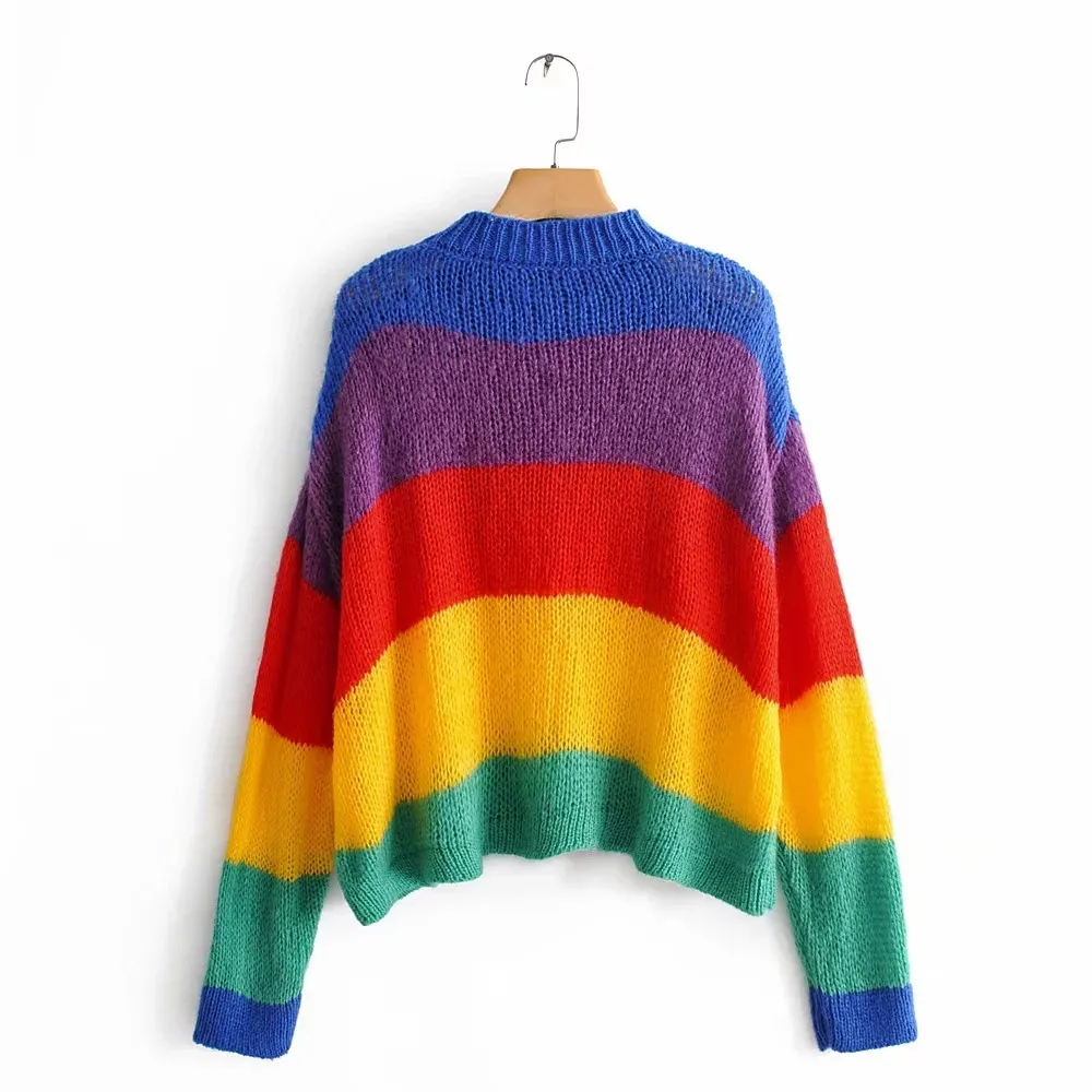 Made with high-quality yarns, the pastel rainbow knit sweater is designed to last. The durable knit construction ensures that the sweater