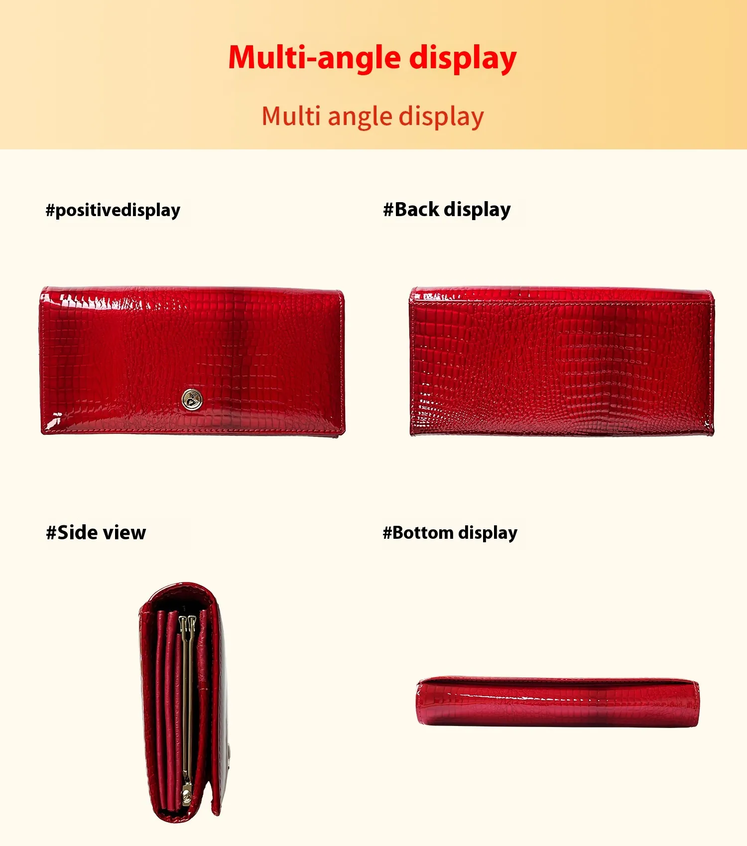 Crafted from the finest patent leather, this wallet features a realistic crocodile pattern that exudes a sense of luxury and sophistication. The glossy finish not only enhances the vibrant red but also provides durability and resistance to scratches and scuffs, ensuring your wallet remains pristine.