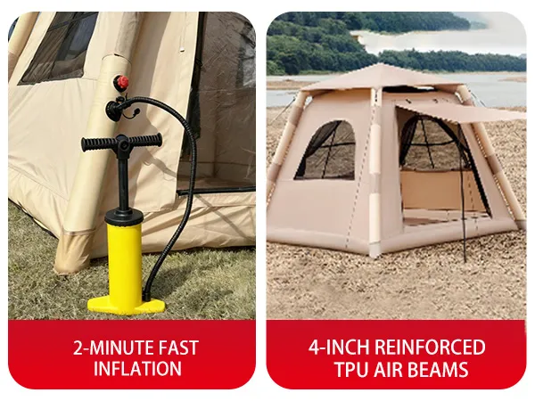 - 【Fast Inflatable Setup】 Simply inflate to set up—no poles or tools required. The tent stands automatically in minutes
