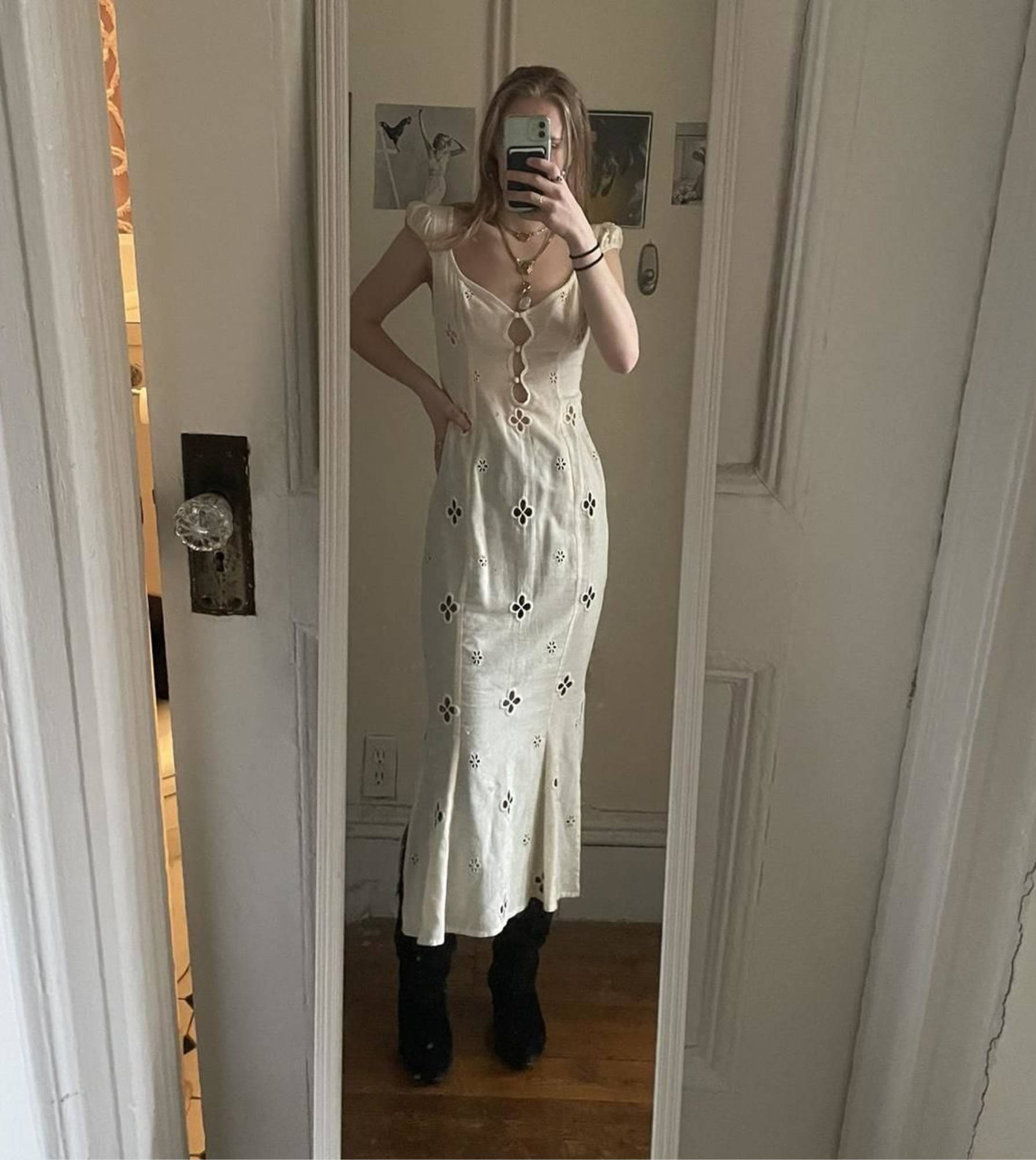 Long white dress suit suitable for going out, dinner, or summer vacation, exuding elegance and versatility.