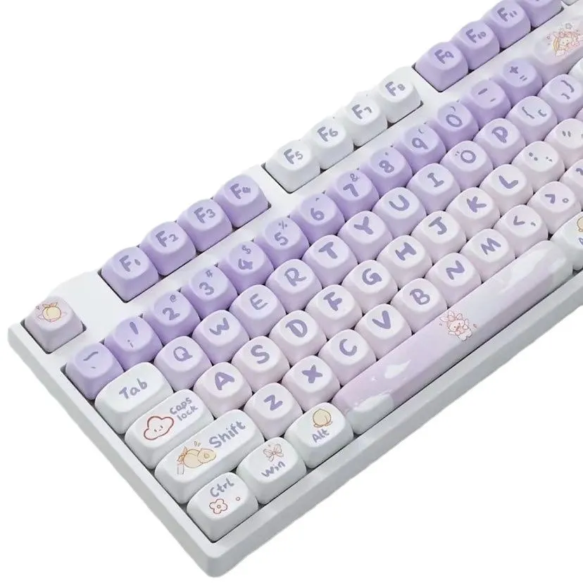 These keycaps are not just for looks—they are fully customizable to fit your mechanical keyboard. The Coeco branding ensures that these keycaps are compatible with most MX-style switches, offering you the flexibility to personalize your setup. You can mix and match these gradient purple rabbit keycaps with other keycap sets or use them for specific functions like WASD for gaming, or for an entire keyboard makeover.
