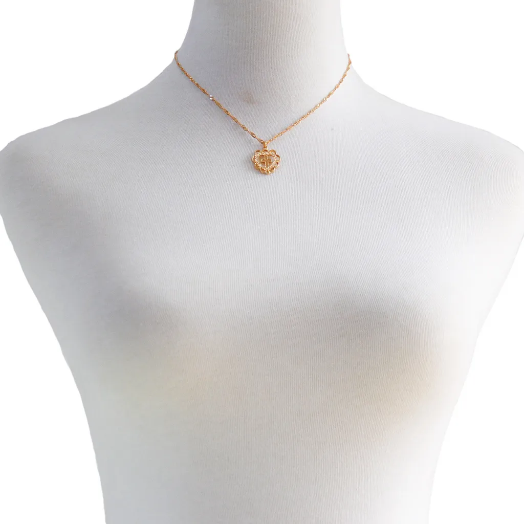 Peach Heart Cross Pendant Necklace