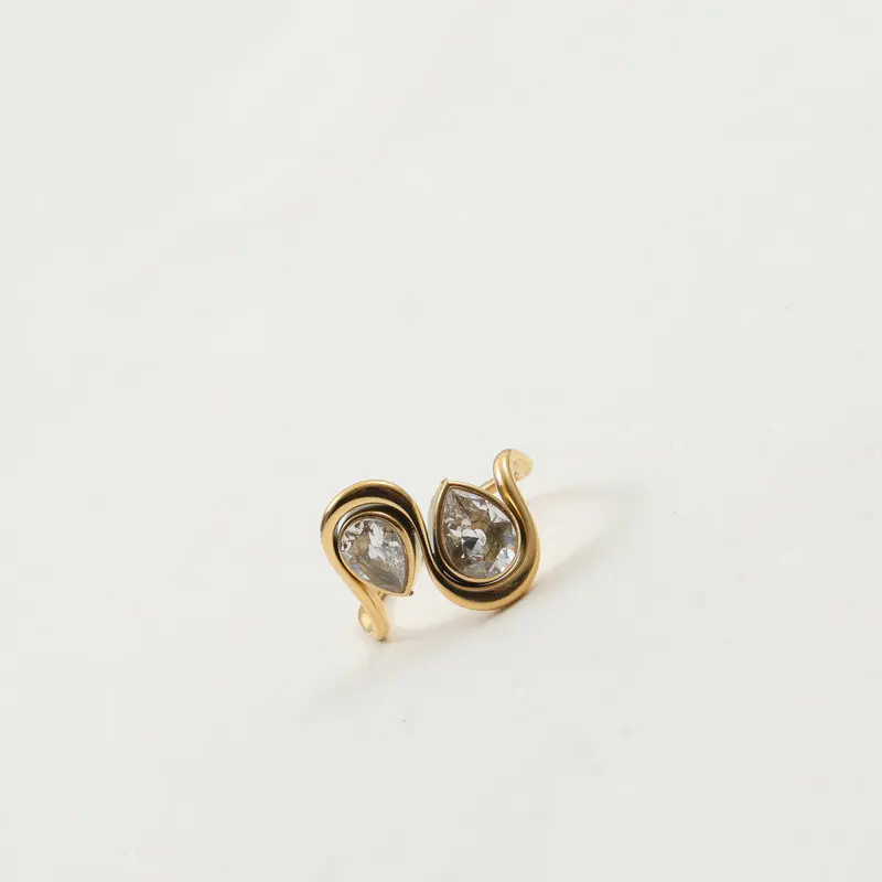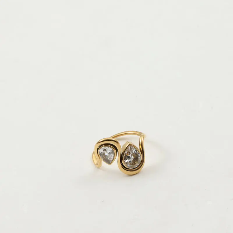 With its classic bezel setting, sparkling CZ stone, and luxurious gold-plated finish, the Pear with Pear CZ Stone Ring is a must-have for any woman who appreciates exquisite craftsmanship and sophisticated design. Make a statement with this gorgeous ring and celebrate love, commitment, and timeless elegance.