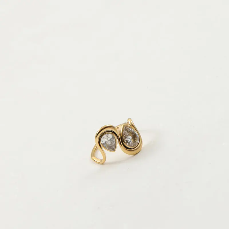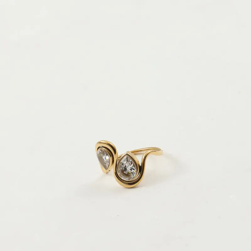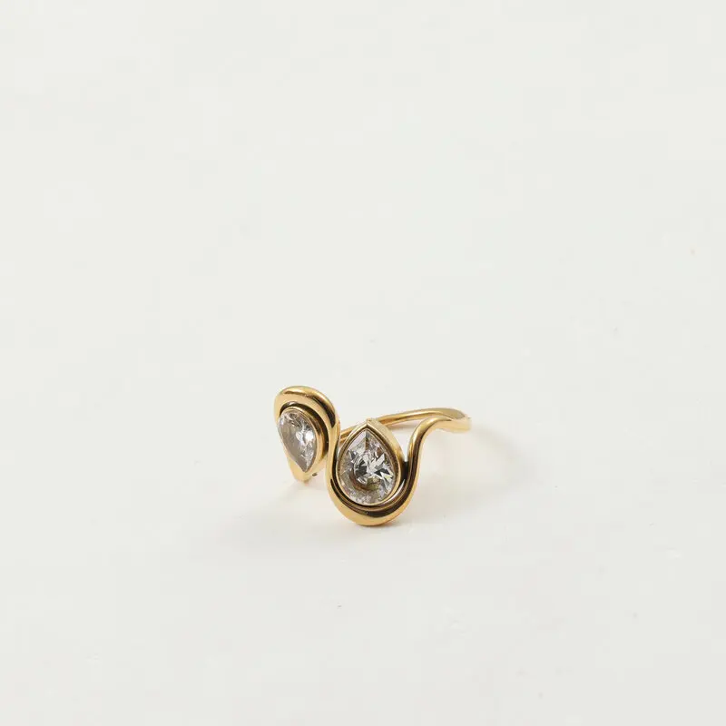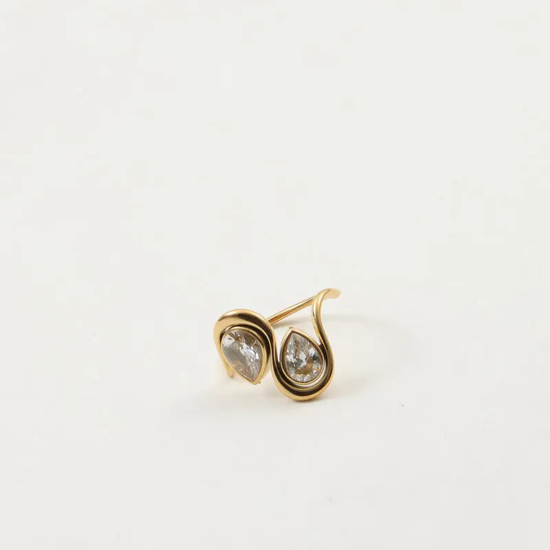 With its classic bezel setting, sparkling CZ stone, and luxurious gold-plated finish, the Pear with Pear CZ Stone Ring is a must-have for any woman who appreciates exquisite craftsmanship and sophisticated design. Make a statement with this gorgeous ring and celebrate love, commitment, and timeless elegance.