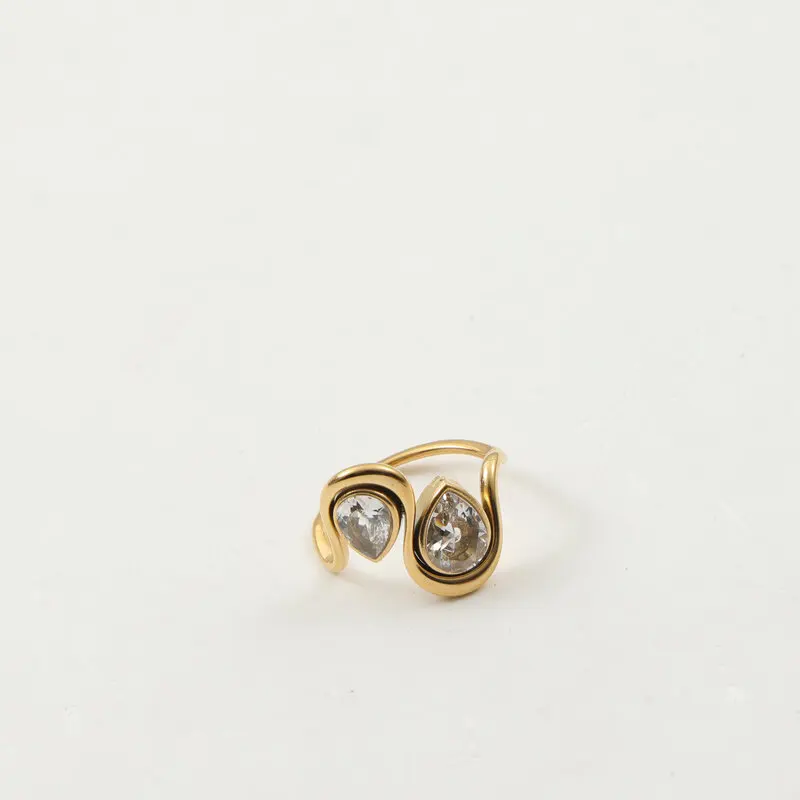 The Pear with Pear CZ Stone Ring is a breathtaking piece of jewelry that combines elegance, modern style, and timeless beauty. Featuring a pear-shaped cubic zirconia stone set in a PVD gold-plated stainless steel band, this ring offers a luxurious look at an affordable price. Whether you're looking for a stunning engagement ring, a special anniversary gift, or simply want to add a radiant piece to your jewelry collection, this ring delivers both beauty and value.
