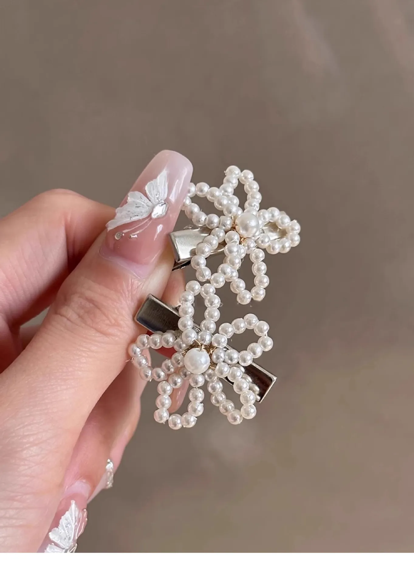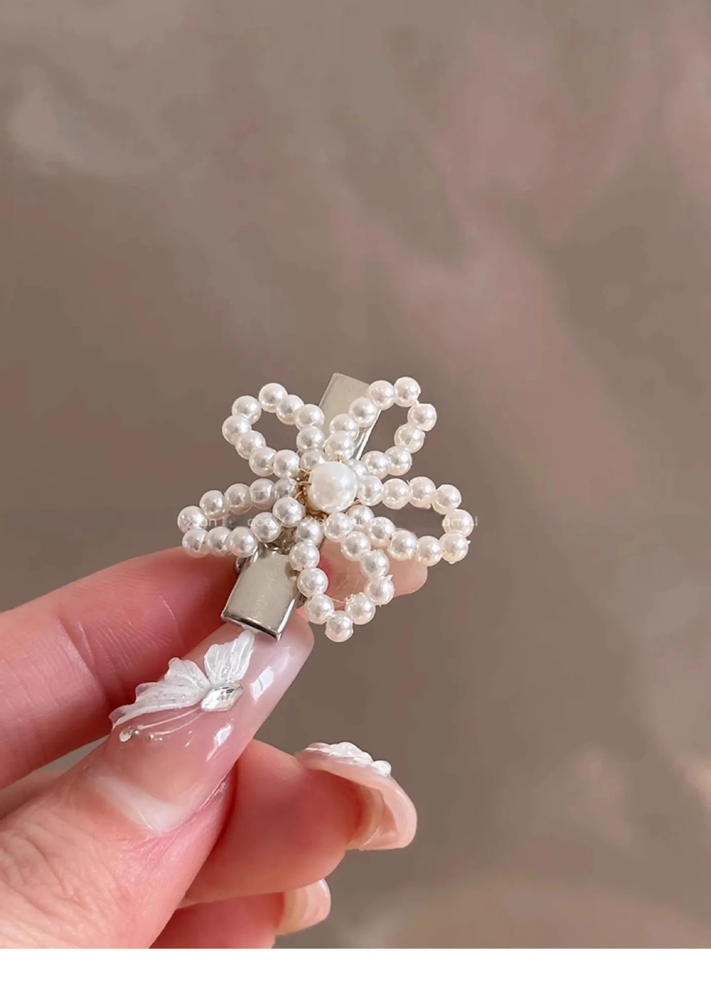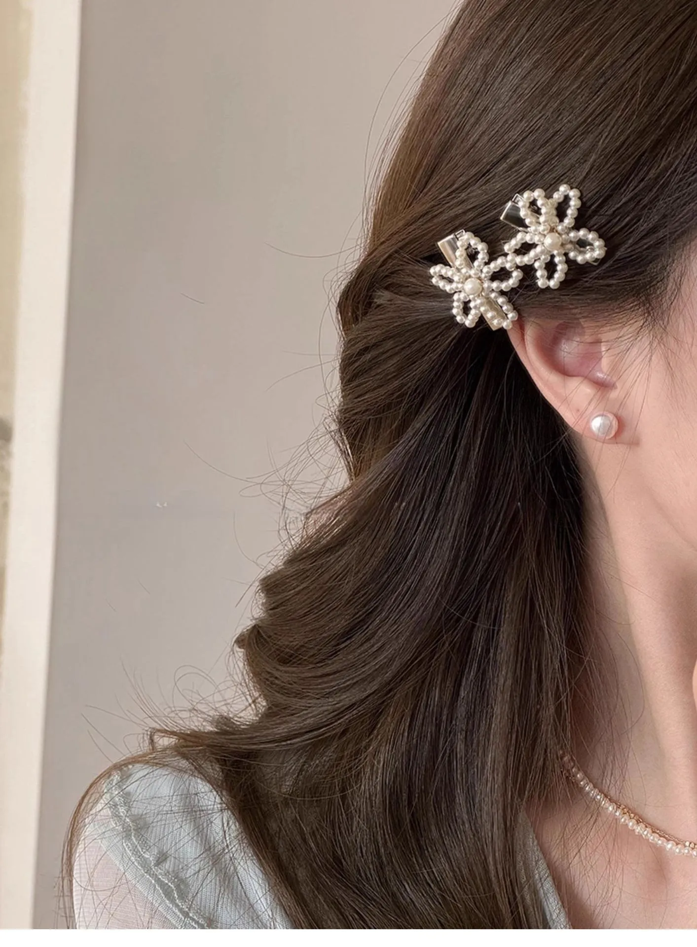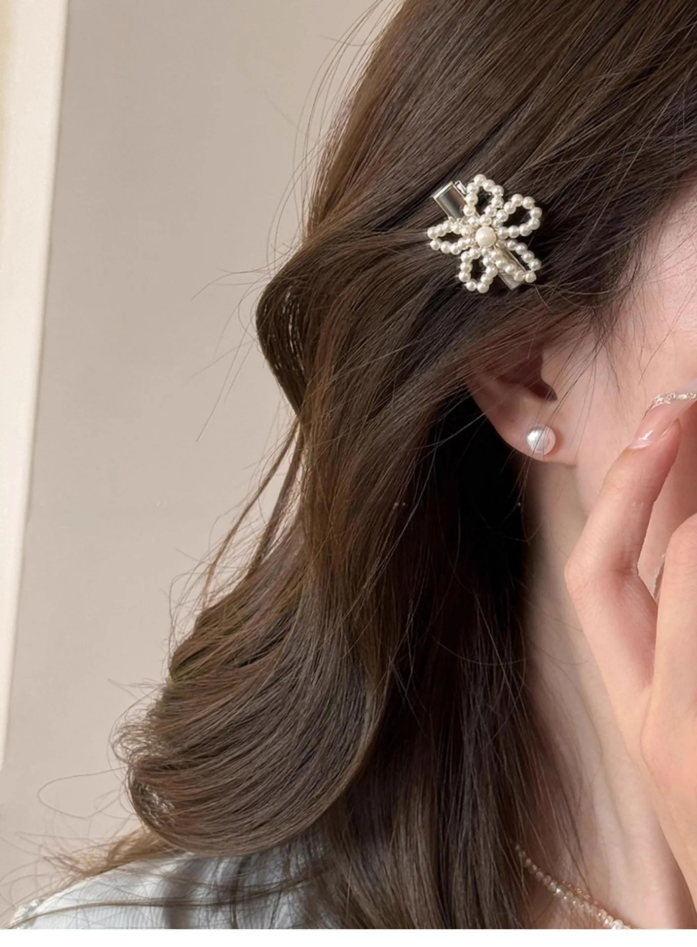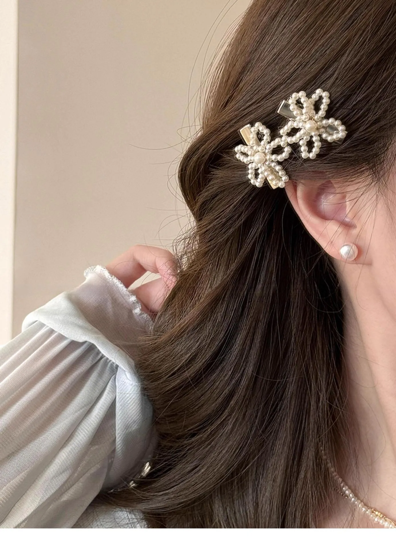 Pearl Flower Barrettes Female Side