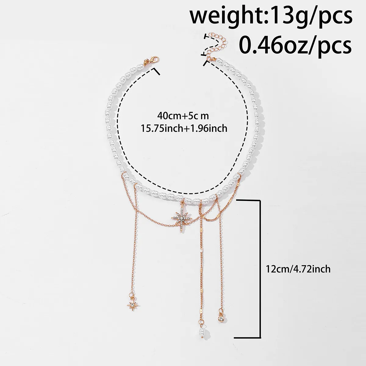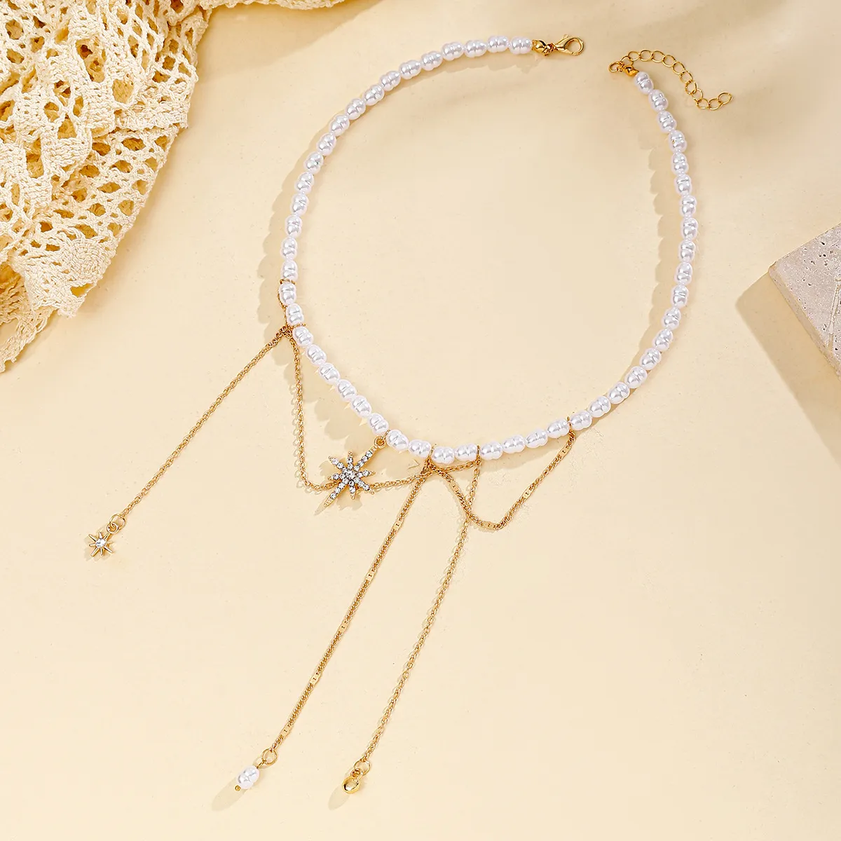 Add Elegance and Charm to Your Look with the Pearl Necklace Tassel Alloy Six-pointed Star