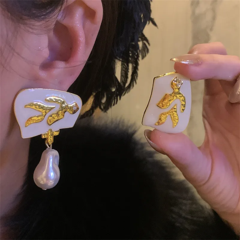 Pearl Pendant Asymmetric Earrings Women