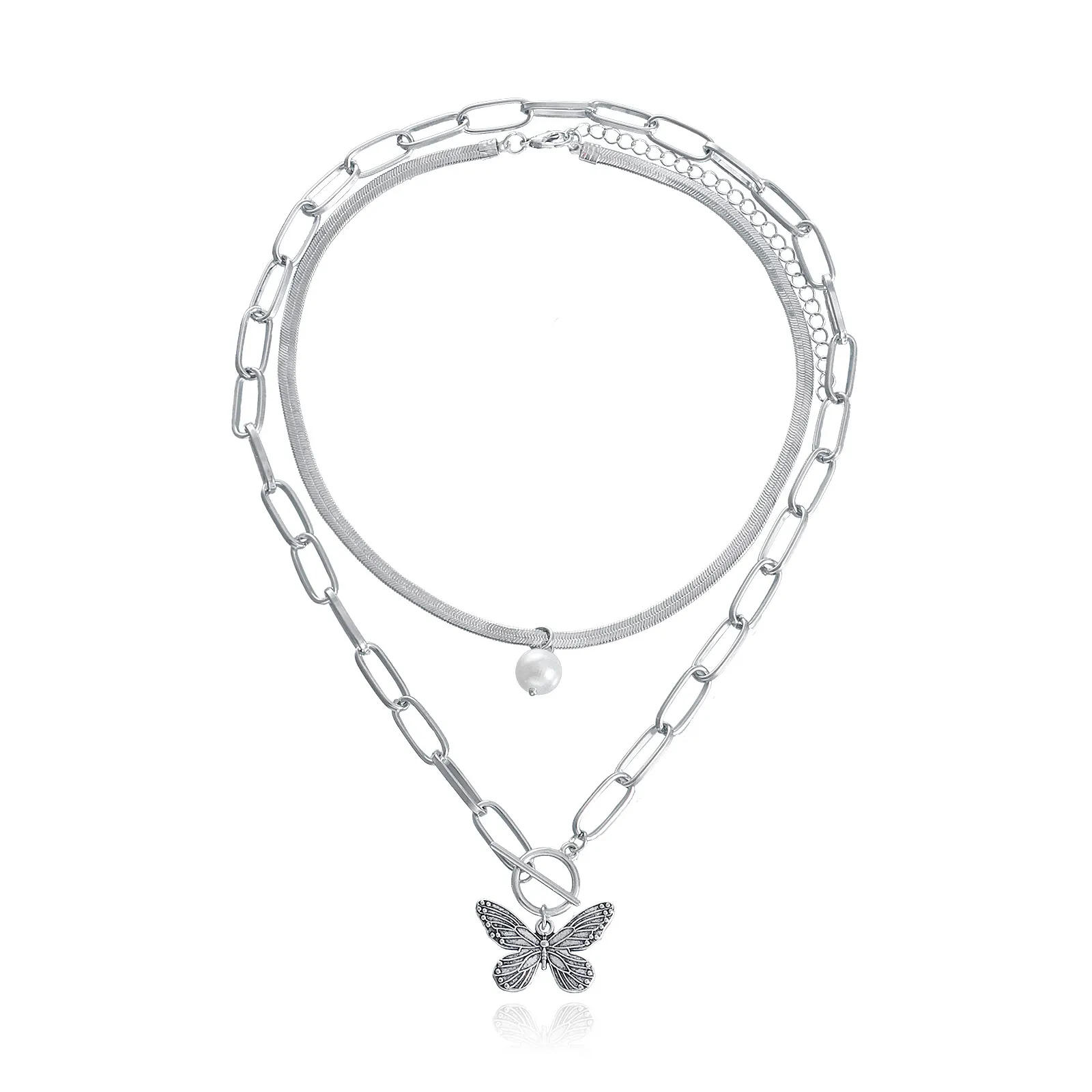 Pearl Striped Butterfly Pendant Necklace Women
