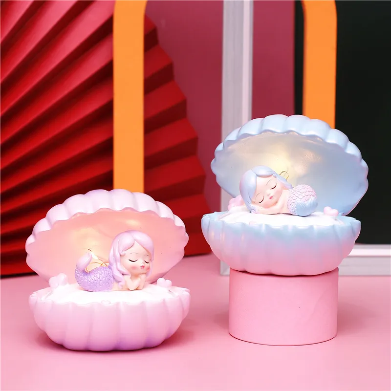 Pearlescent Mermaid Star Lamp Ins Girl Dream Shell Lamp Fairy Decoration Night Light Resin Crafts