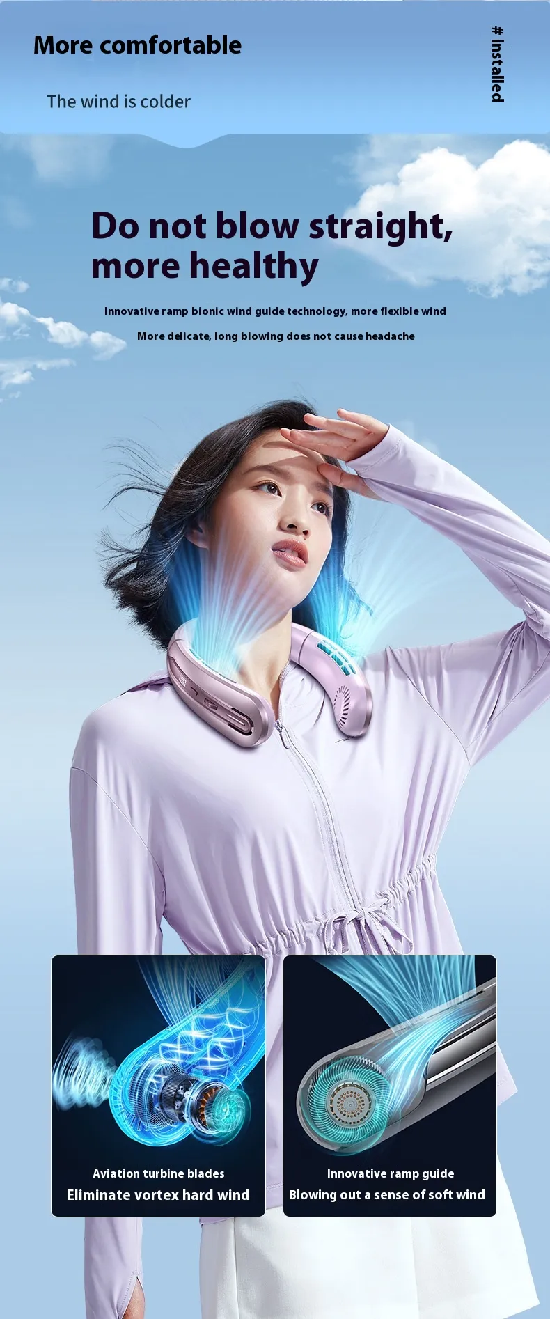 constantly adjust it. Simply wear it around your neck, and enjoy the breeze.