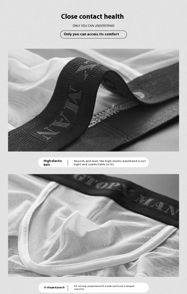 These breathable briefs are designed with both style and functionality in mind. The transparent mesh allows for maximum airflow, keeping you cool and fresh, while the ice silk material ensures a silky-soft feel against your skin. Whether you're looking for something sexy for a special occasion or simply want to add a bold statement to your underwear collection, these briefs are the perfect choice for any man who wants to stand out with confidence.