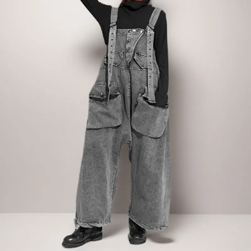 Personality Street Tooling Style Overall Jeans for Women – Trendy and Comfortable