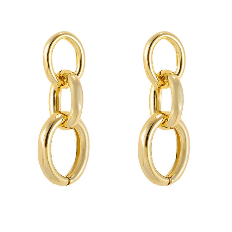 The chain design in these earrings adds texture and movement, making them a visually dynamic accessory. Chains have long been a symbol of strength and unity, and when integrated into jewelry, they create a look that is both stylish and meaningful. The links of the chain are carefully designed to ensure fluidity and elegance, creating a lightweight yet bold piece that catches the eye with every turn of your head.The chain design gives the earrings a sophisticated, minimalist appearance, making them perfect for pairing with both casual and formal outfits. Whether worn alone or layered with other earrings, the chains will add a touch of refinement to any look.