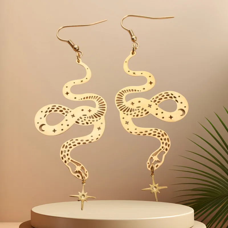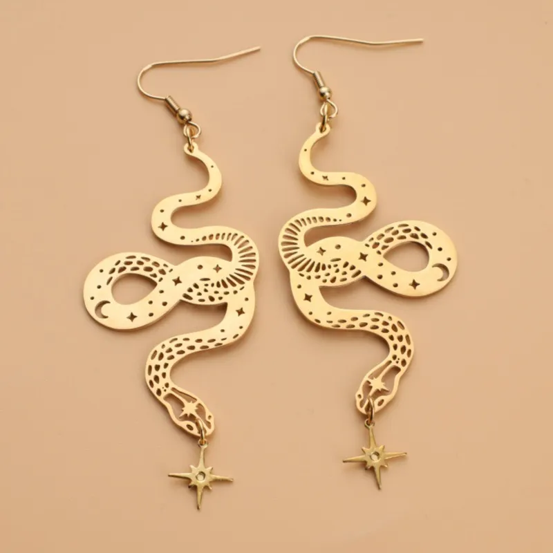 Personalized Design Snake Element Simple Hollow Star And Moon Earrings