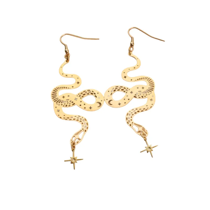 Personalized Design Snake Element Simple Hollow Star And Moon Earrings