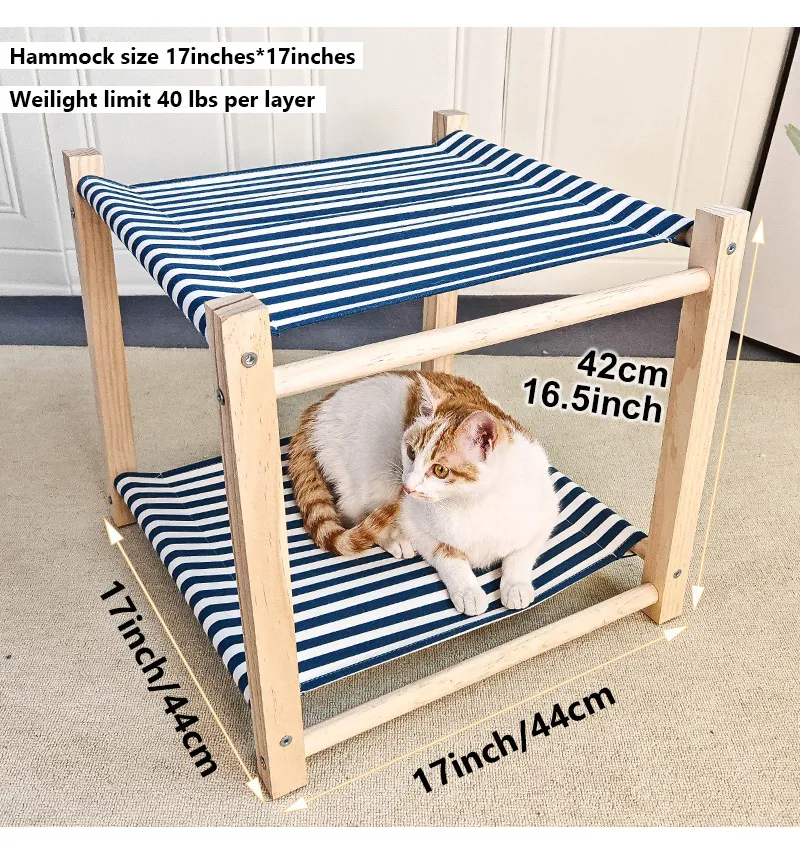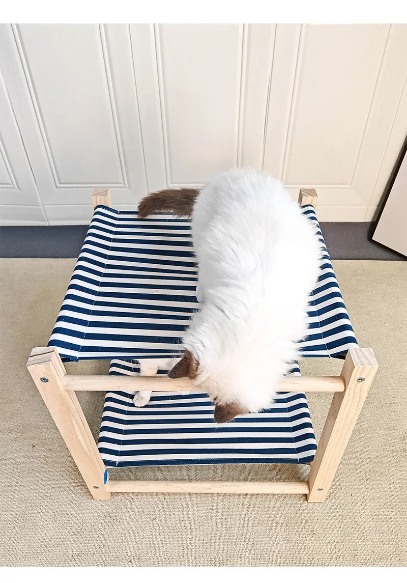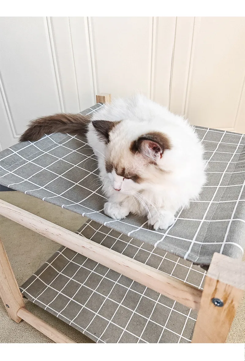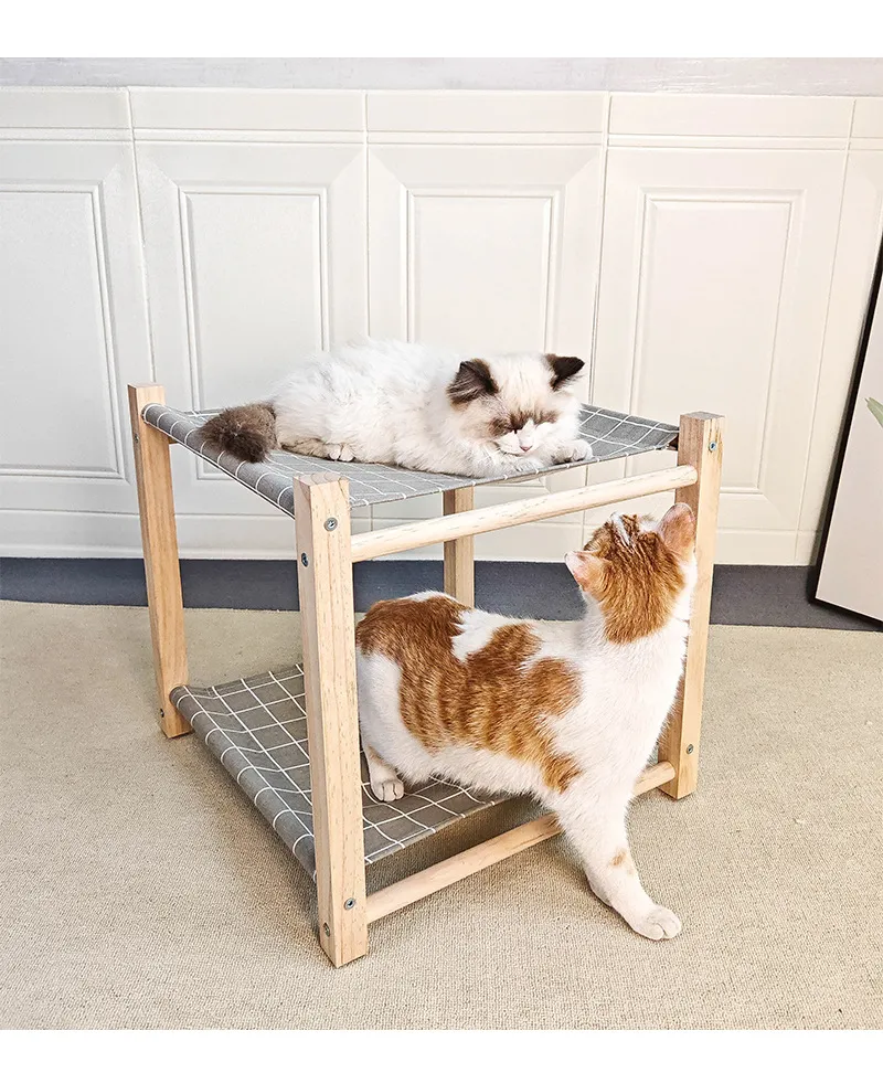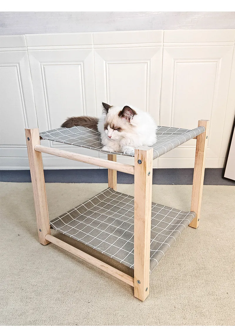 Pet Camp Bed Solid Wood Double Layer Cat Hammock Upper And Lower Bunk Removable And Washable