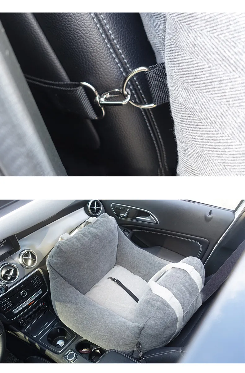 Safety is a priority with the Pet Dog Car Carrier Seat. The secure fastening system and non-slip base ensure that the seat stays in place, preventing unnecessary movement and ensuring that your dog remains secure during the ride. With this car seat, your pet is safe from distractions while you drive.