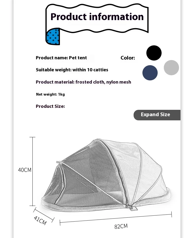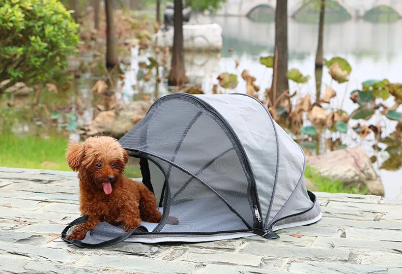 Made from durable, weather-resistant materials, the tent offers both protection from the elements and comfort for your pet. Its folding design ensures easy setup and portability, making it ideal for adventures with your four-legged companion. Lightweight and compact, this pet tent is an essential travel accessory for pet owners who want to ensure their pets are comfortable on the go.